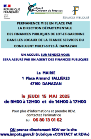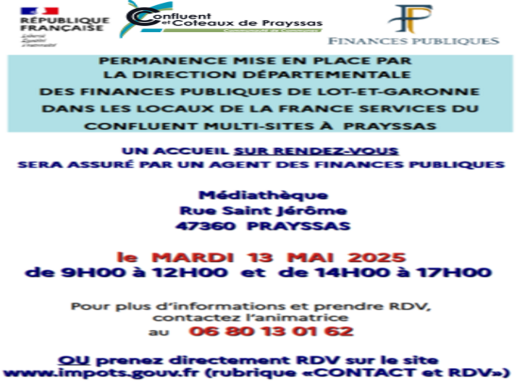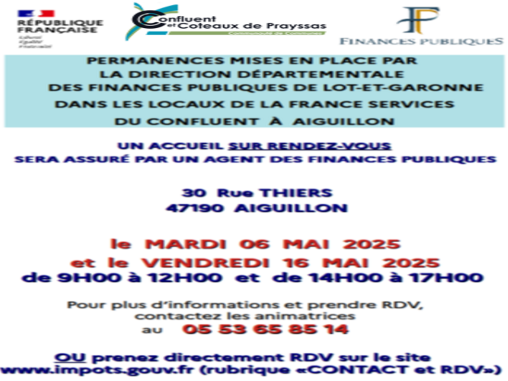 Vous avez besoin d’aide ? Des permanences assurées par un agent des Finances Publiques sont organisées dans vos Espaces France Services sur le territoire :