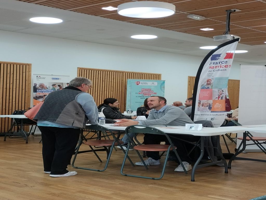 Organisé par France Travail sur la thématique de l'accompagnement et du soin à la personne, ce forum a été l'occasion pour le Relais Petite Enfance de promouvoir à nouveau les métiers de la petite enfance. Cette action a été également une opportunité pour faire connaître les missions du métier récent de conseiller France services aux demandeurs d'emplois et aux personnes en quête d'informations sur l'orientation professionnelle.